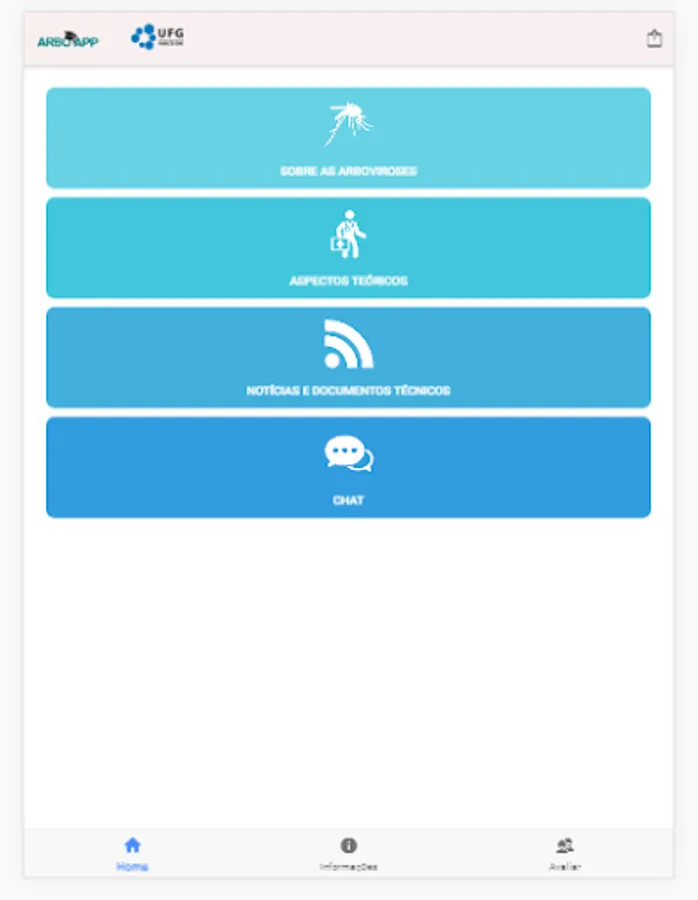 The purpose of this application is to disseminate information about the main arboviruses existing in Brazil and in the world: Dengue, Zika Virus, Yellow Fever, Chikungunya and Mayaro, with these media tools we can reach students and health professionals who have an interest in subjects related to health.