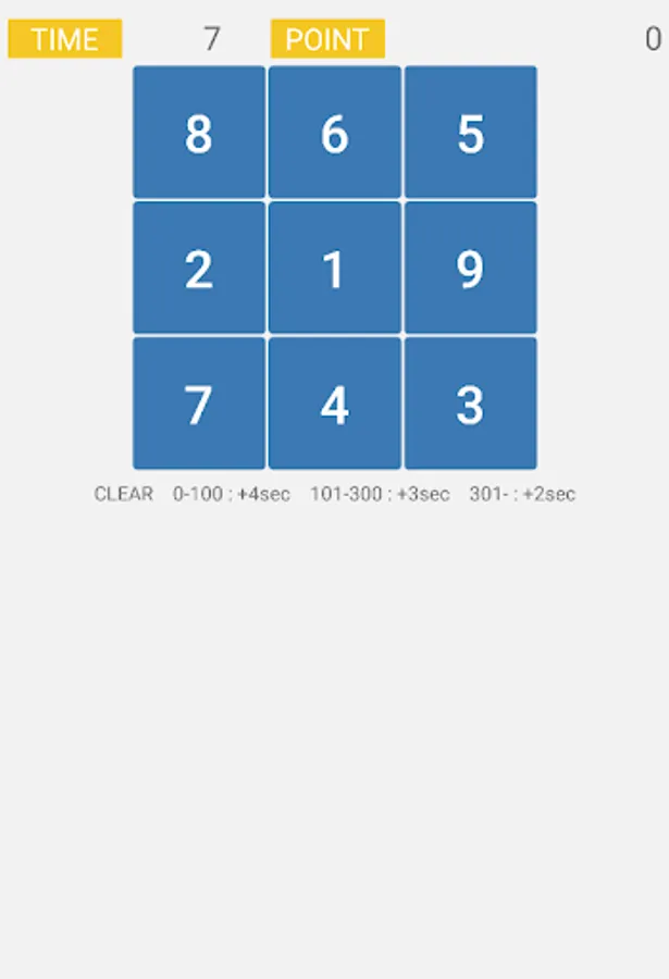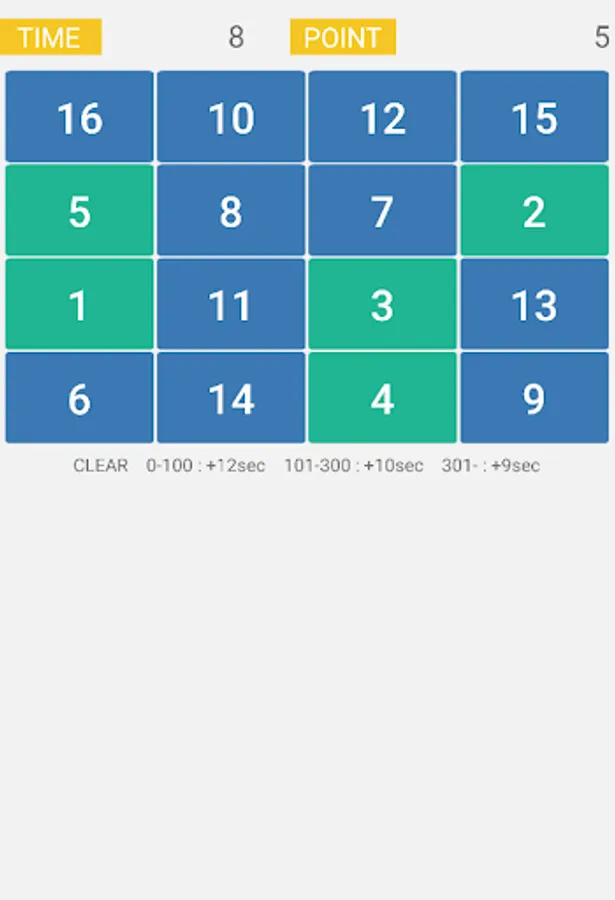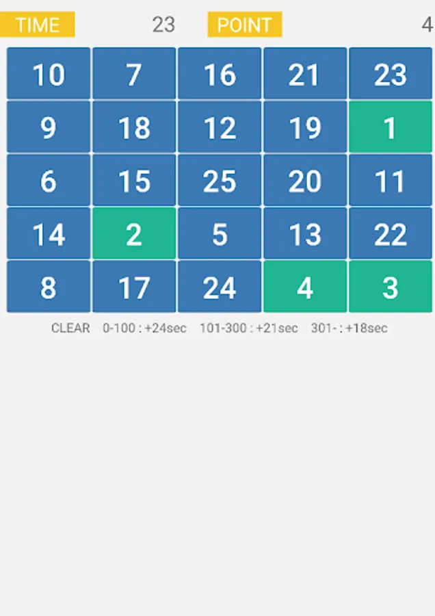 Tap from small number to large number within time limit.