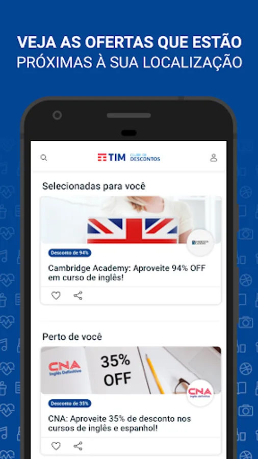 With the application of TIM Clube de Discounts now it is easy to buy a lot and save! There are thousands of exclusive offers in the best brands from all over Brazil.