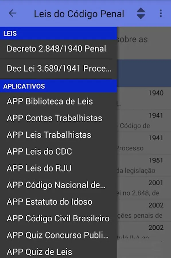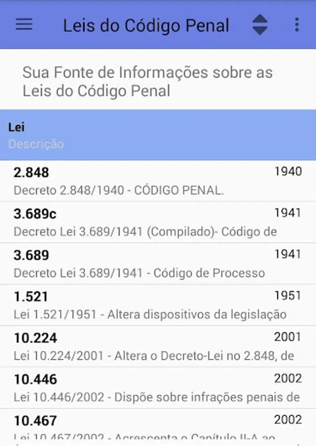 This application is designed to provide the citizen, access the Main Laws of the Brazilian Penal Code.