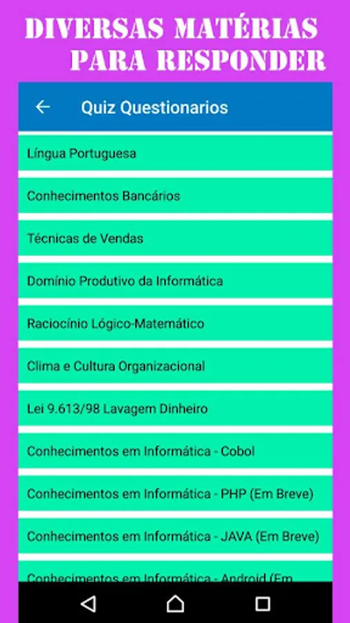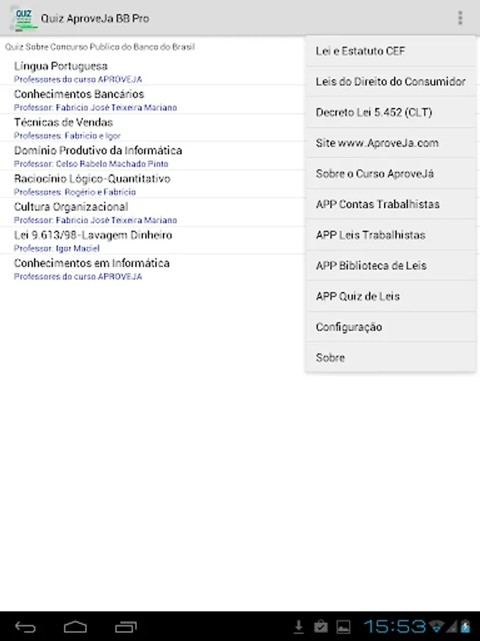 QUIZ CONTEST is a FREE application that through QUIZ-style questions (Questions and Answers) tests your knowledge about the content that will be charged in the various contests as a starting point for your studies.