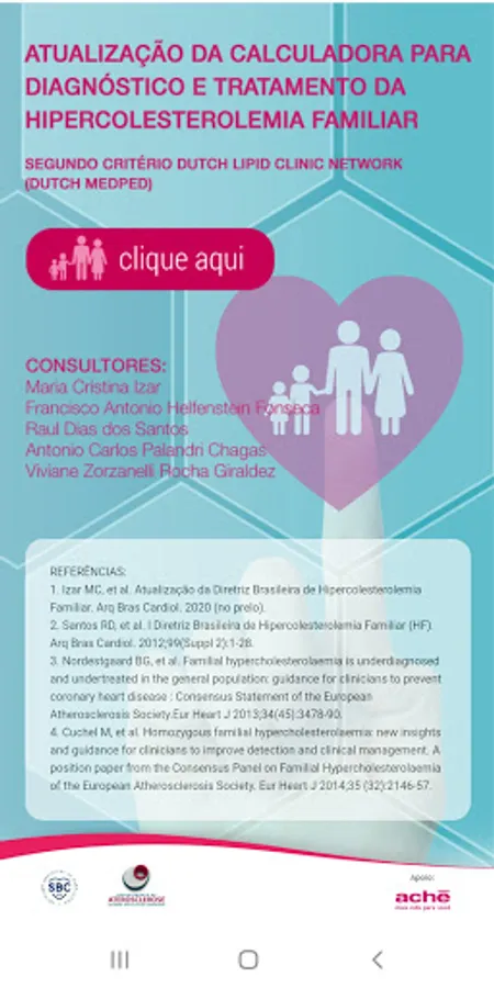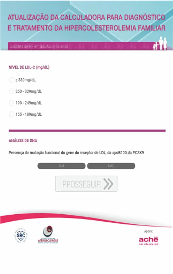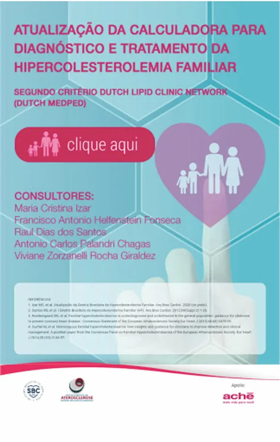 The Calculator for diagnosis and treatment of Familial Hypercholesterolemia 2020, prepared by the Department of Atherosclerosis of SBC, is an important tool to help health professionals to analyze their patients in an agile way.