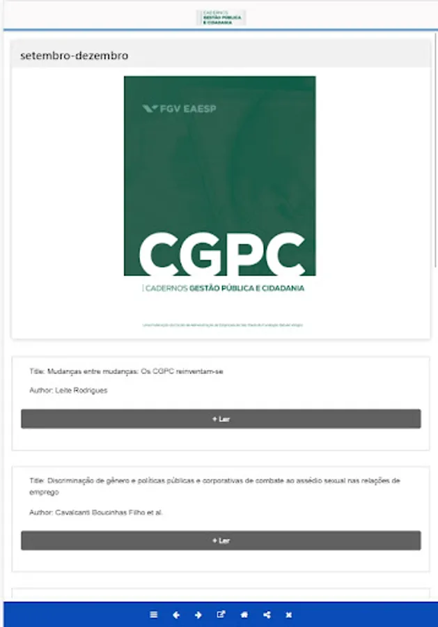 The journal CGPC (Public Management and Citizenship Journal) is an online publication, with open access, without restrictions. Article submissions are made exclusively electronically, followed by format analysis, similarity tracking, desk review and peer review.