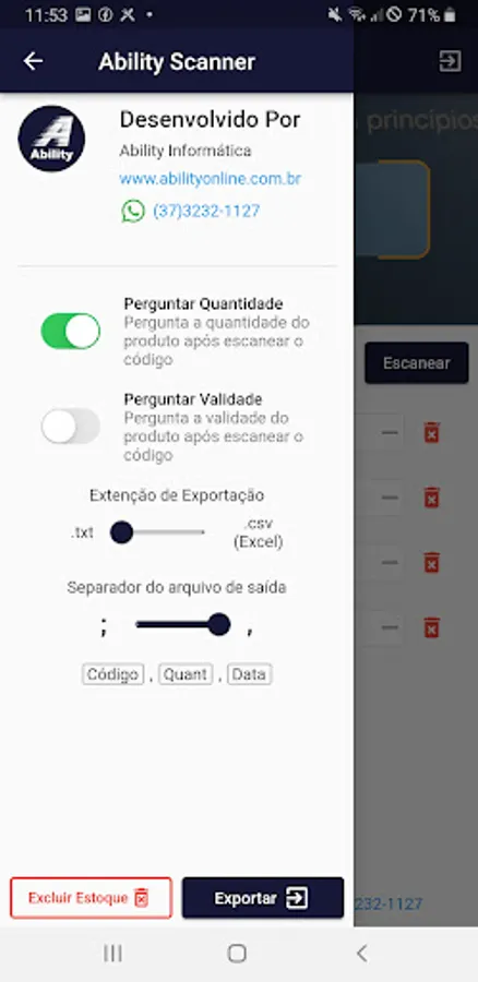 After reading the products, it is possible to export to an Excel or Text file and import it into the Ability system or another ERP that you use.