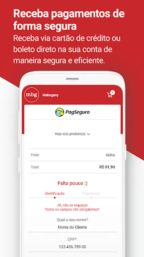 You can sell in installments, the customer pays with the main brands and you receive in 30 days. The Mahogany app has one of the most secure security standards and the data is protected by encryption.