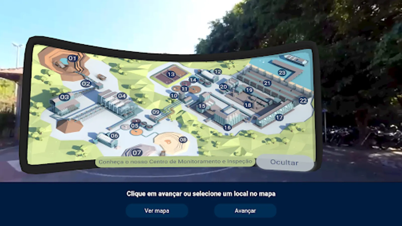 Hi! Welcome to Samarco 360°, an application specially developed for you to take a virtual tour of our entire operation. Here you will learn about our units, the new technologies implemented and learn how we transform a material with low iron content into a product with high added value, which provides greater productivity for the world's steel industries, which supply steel for the production of cars, appliances and electronics. , construction and others