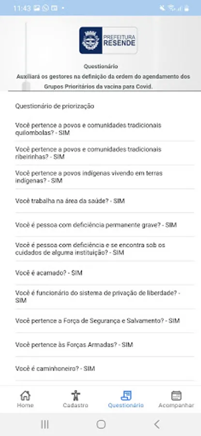 Resende Vacina - App where the citizen of the municipality of Resende can register for the vaccination schedule.
