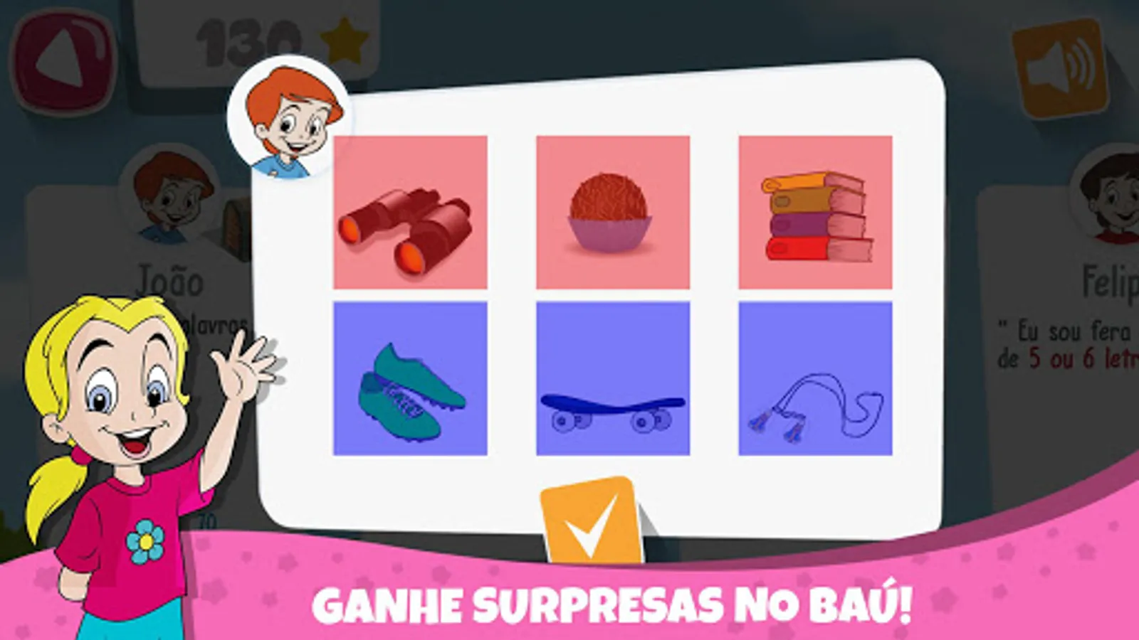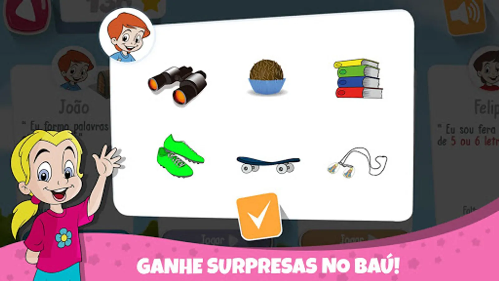 criança atinja determinadas pontuações. A partir daí será possível escolher esse