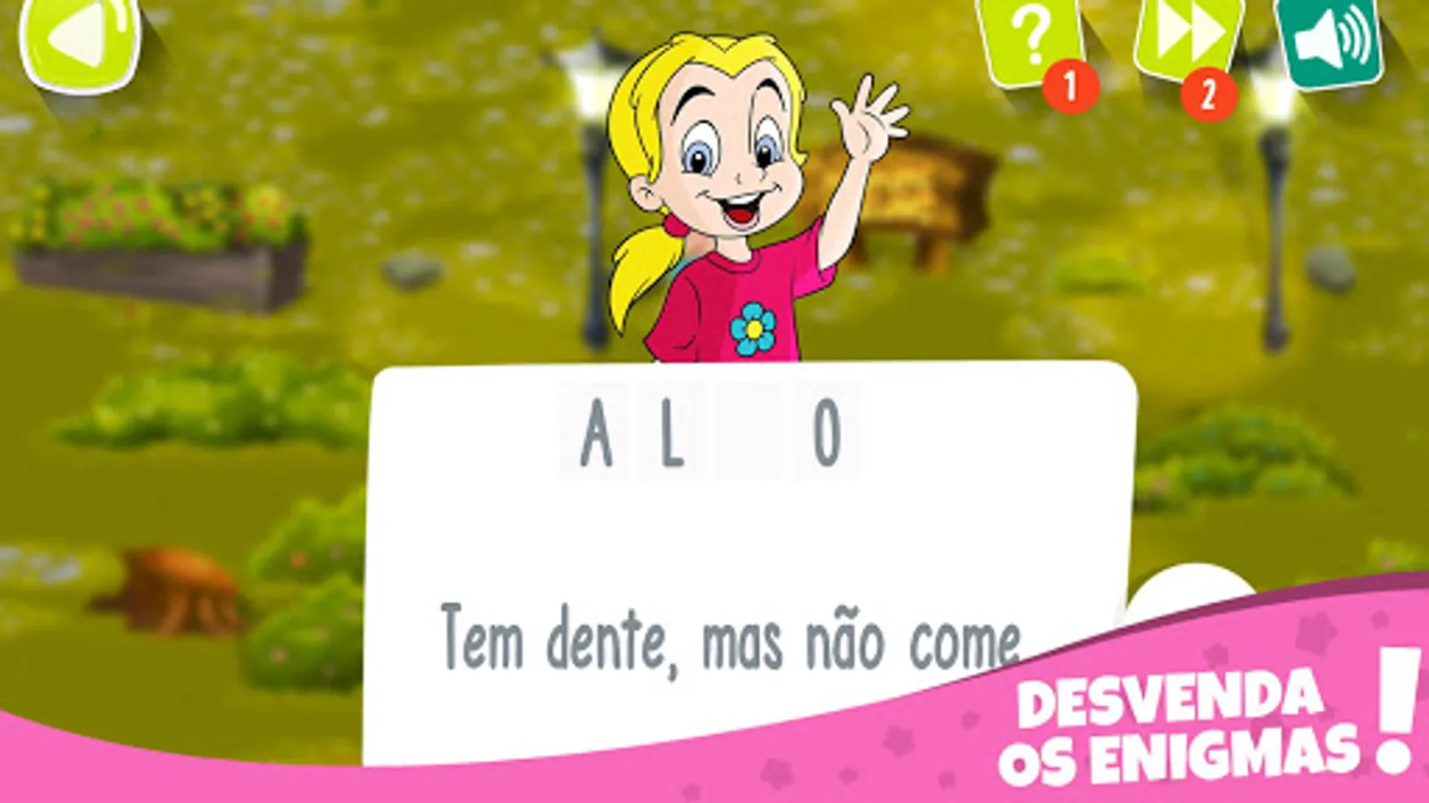 encontrar a letra que completa a resposta ao enigma. O jogo vai se desenrolando
