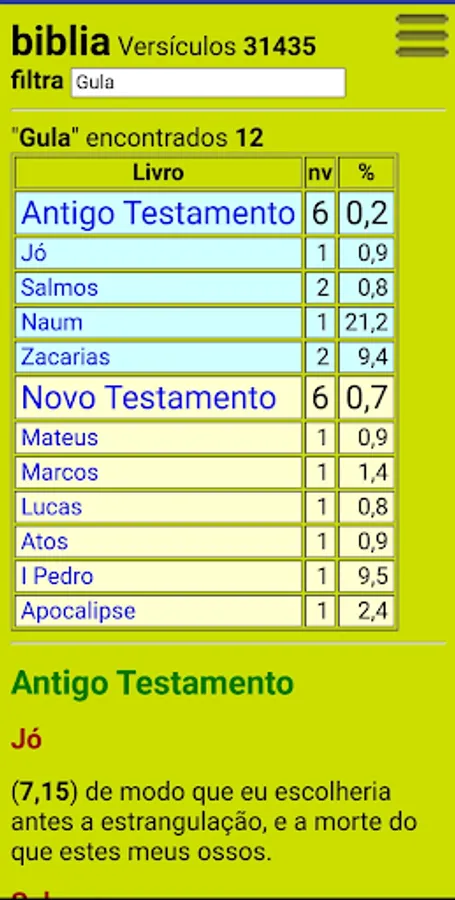 Vehicle queries and statistics in the Portuguese bible