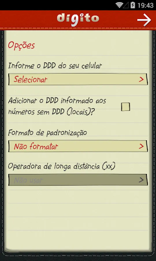 2) You will set some basic parameters such as: a) If the mobile numbers without DDD on your agenda should be changed or not. b) Choose from some options, how you want to standardize the format of your numbers and c) What is your preferred long distance carrier
