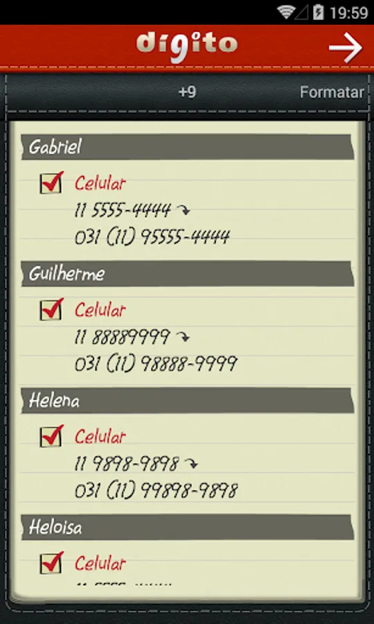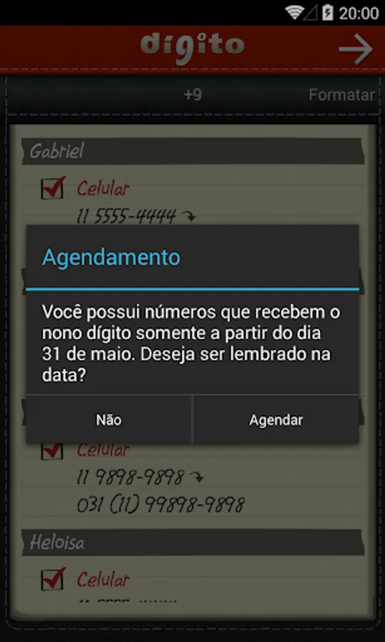 You can choose only certain contacts to change. The 9Digito backs up your schedule, so if you want to undo the changes in a few touches. And you can program the change only for the day of change ... "
