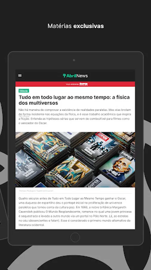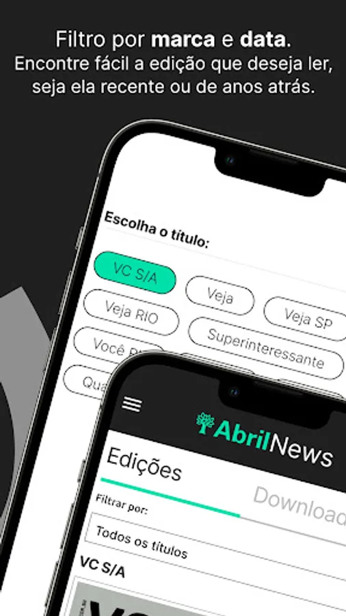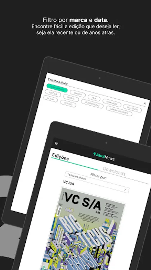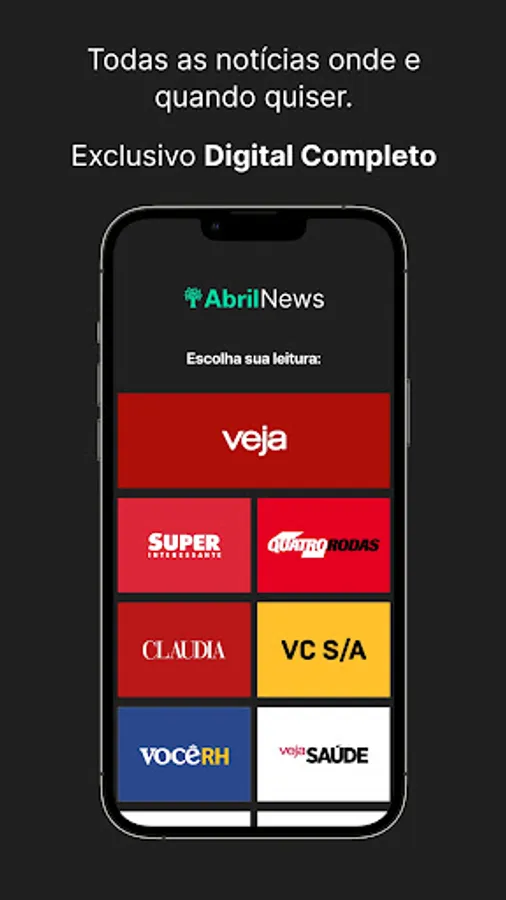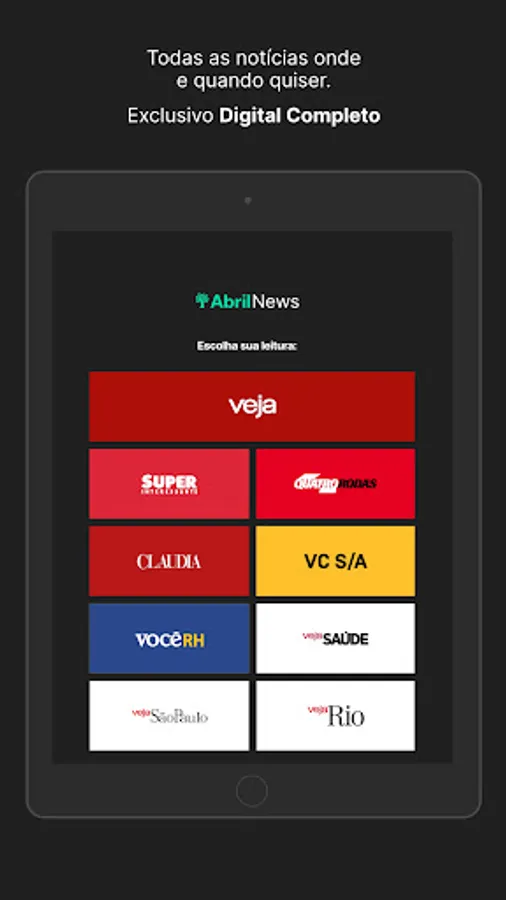 Access all digital content from Veja, Veja SP, Veja RIO, Veja Saúde, Superinteressante, Claudia, Quatro Rodas, VC S/A and Você RH on your tablet or smartphone.