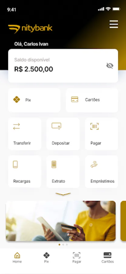 Deposits via Boleto, international card and transfers (Pix, Ted and Doc).