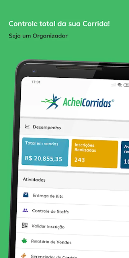 With the AcheiCorridas® app for Organizers, you can control the progress and performance of your run!
