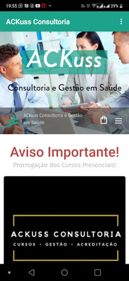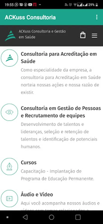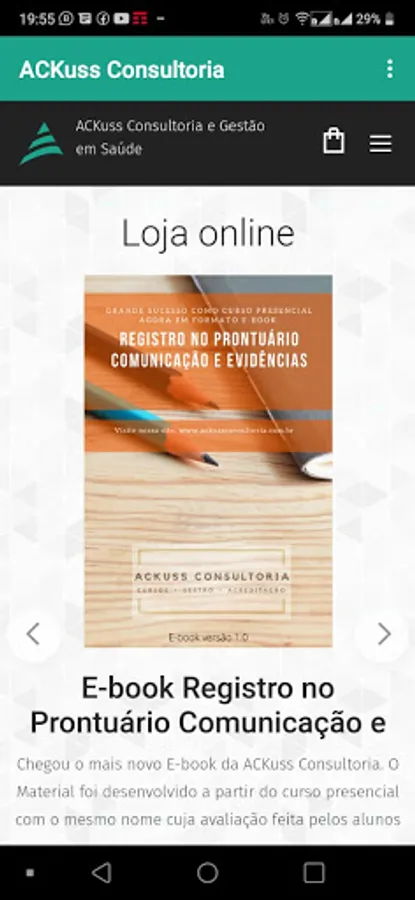 This application contains the main products and services of ACKuss Consultoria Gestão e Saúde, in addition to enabling the creation of a user for you to have access to pages with exclusive content.