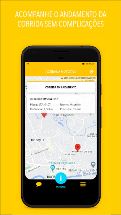 Our application allows you to call one of our motorcycle taxis and follow the vehicle's movement on the map, being notified when it is at your door.