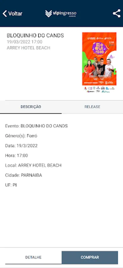 We are a young company formed by experienced professionals. We promote the sale of tickets through the website www.VIPINGRESSO.com.br for events that have a festive, cultural or sporting nature. Our head office is headquartered in PARNAÍNA, NORTH OF PIAUI. We base our administrative policy on ethics, reliability and results, both for clients in the private sector and for public bodies.