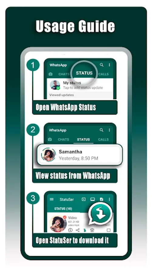 2- Open StatuSer, the images / videos of recent stories will be in the "Status" tab.