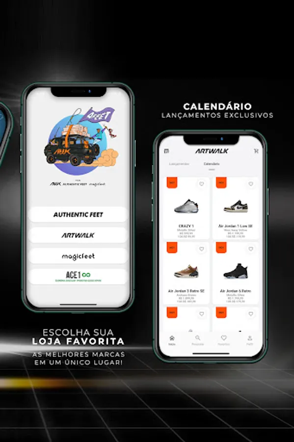 The APP MVP was developed by Grupo Afeet, the largest sneaker, streetwear and sports lifestyle retailer in the country. And it brings together in a single platform the news and exclusive launches of the three brands of the group: Artwalk, Authentic Feet and magicfeet.