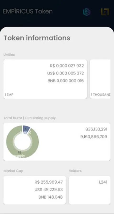 + the value of coin in Fiat values (USD, BRL) and BNB