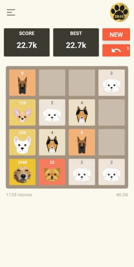 This is the free 2048 number puzzle game created by Gabriele Cirulli in 2014 (https://blogs.wsj.com/digits/2014/03/18/want-to-stay-anonymous-dont-make-a-hit-computer-game/).