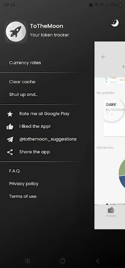 For this reason, and ensuring the security of users' coins, the ToTheMoon app cannot be used to view the information of the wallets located in CEX.