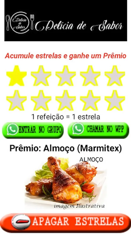 Marmitaria Delicias de Sabor Virtual Loyalty Card, meet our delights, join our group of advantages, and gather stars and exchange for prizes ...