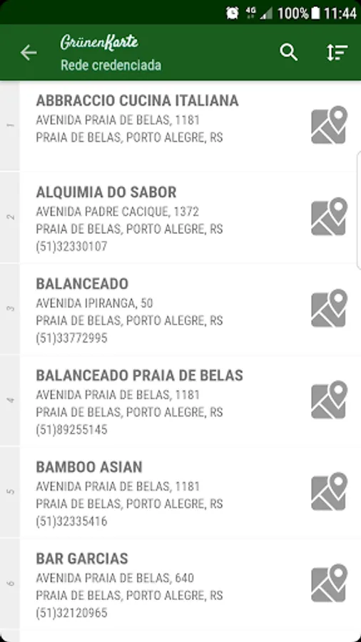 * Consult the accredited network (ordering by establishment, address, neighborhood).