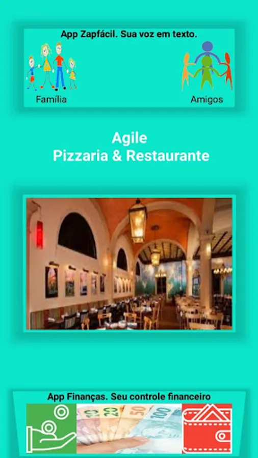 Pizzaria Agile is an app composed of 4 (four) apks, one file available on the Play Store for its customers and three administrative files that will be sent to interested companies after registering at https://www.agile50por1.com.br