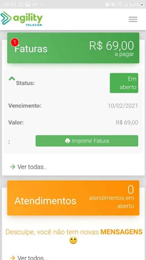 Official application of Agility Telecom. Consult your invoices, sign contracts, and unlock your access, with just one click!