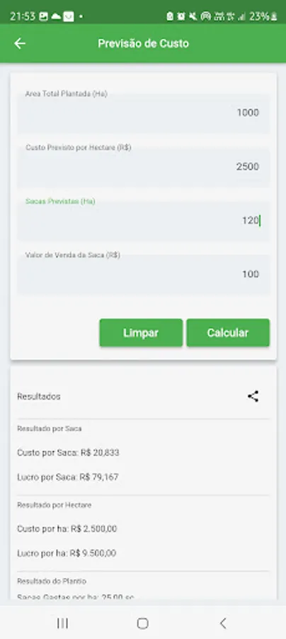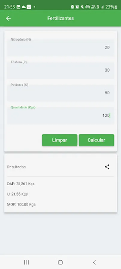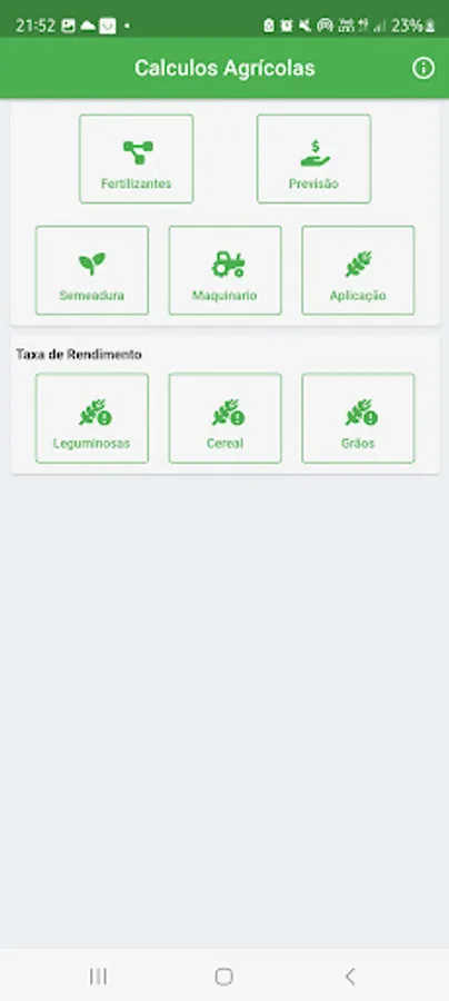 The Agricultural Calculator is an application developed mainly for people in the agricultural environment, having direct contact with spraying machinery that need to make adjustments to each application aiming at better use of inputs in the farming.