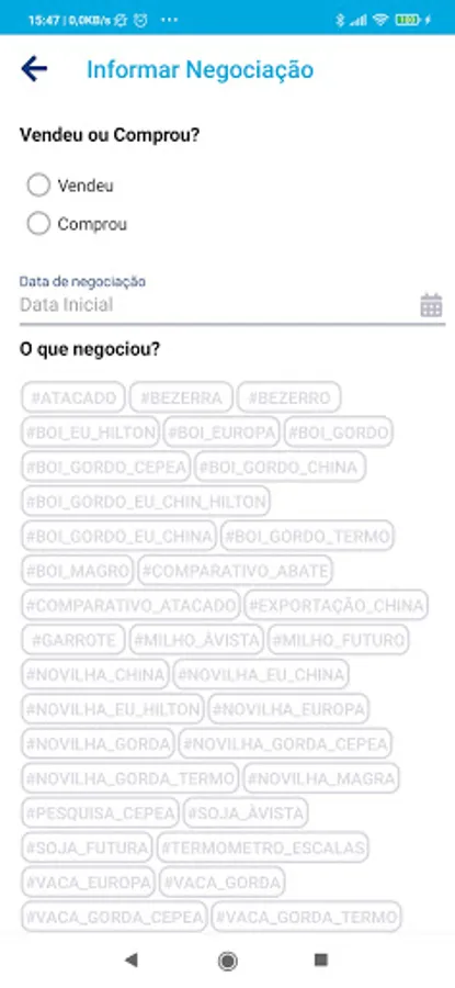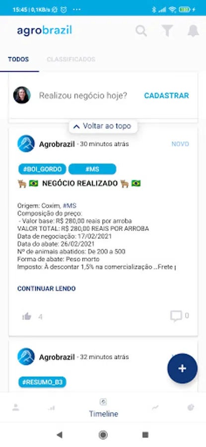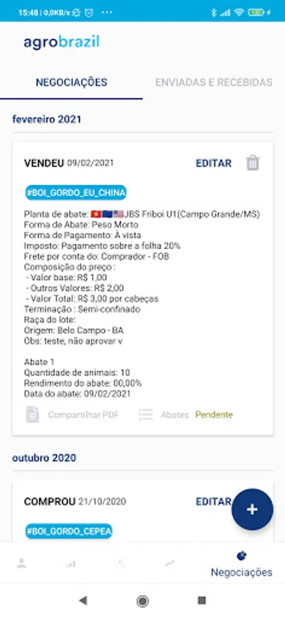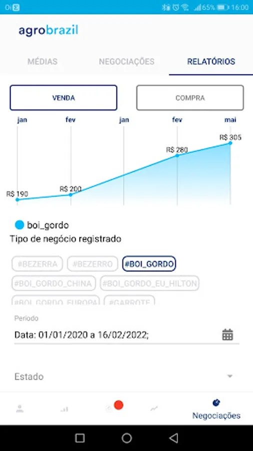 We provide our customers with immediate information about the value of the arroba of live cattle and agricultural commodities, in addition to the business carried out on the day, for example, the purchase and sale of cattle. Such a tool gives the entrepreneur and the rancher the chance to increase their profit margin, through buying and selling at the right time. With our partnership with CROSS INVESTIMENTOS, the rancher can also protect prices through hedging.