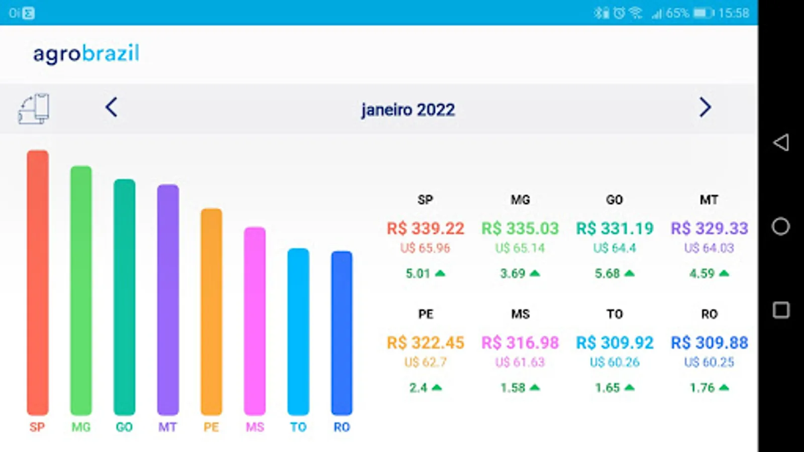 The application generates in a simple way the main market information for the field (beef futures market, cattle market, value of the arroba of the fat cattle, price of the fat cattle, price of the fat cattle today).