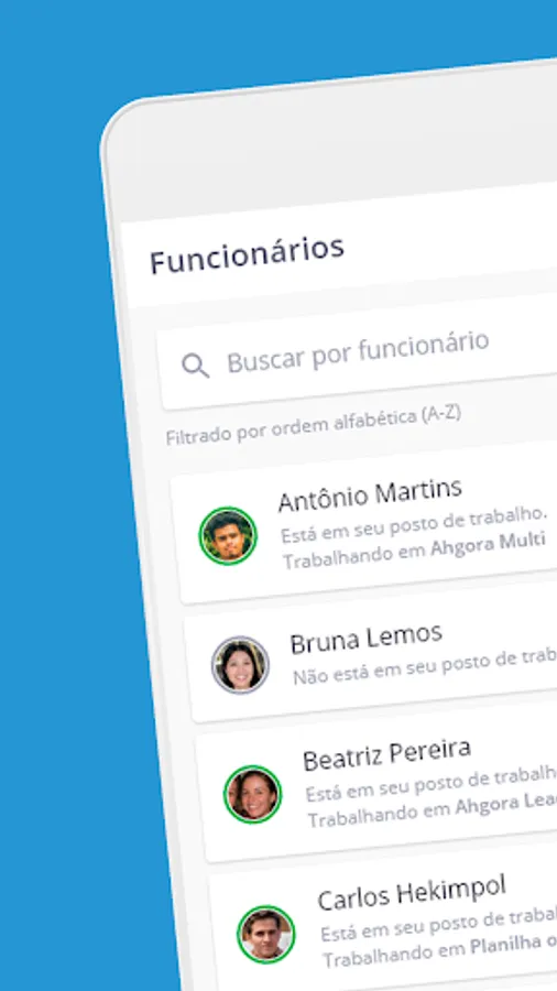 With Ahgora Leader, management is decentralized and much more practical. It is also possible to see how many employees are present in the company, which are working regardless of location, and which are absent or away.