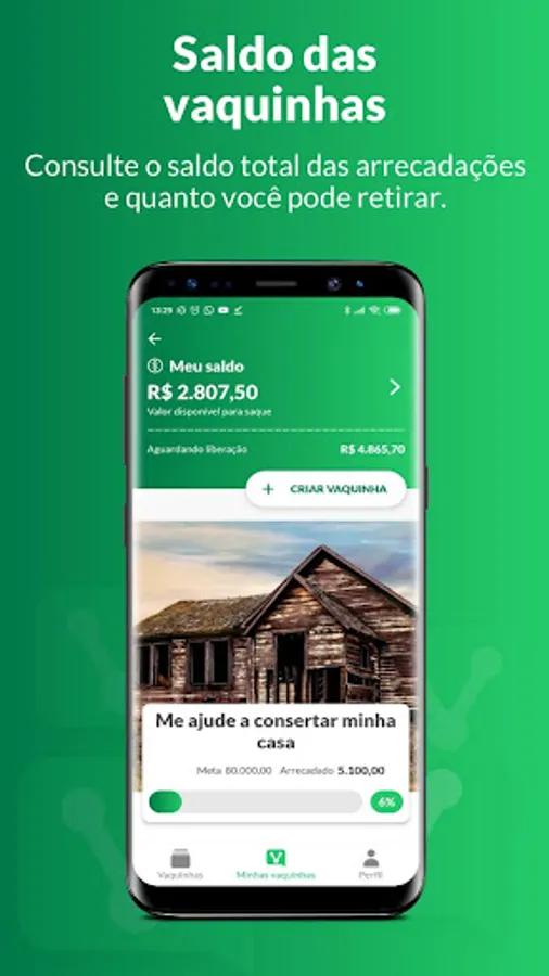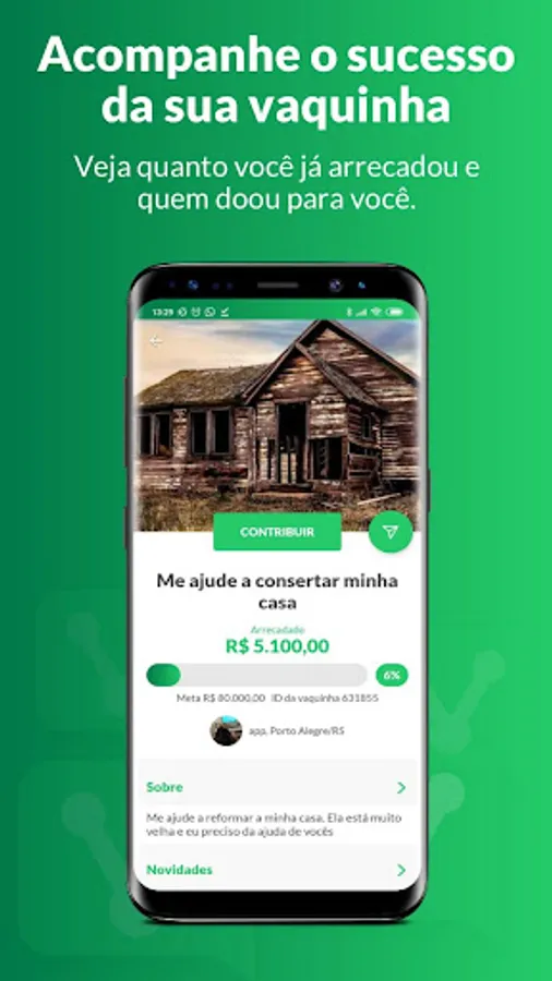 With the Vakinha app you can create a free online kitty campaign to raise money on the internet.