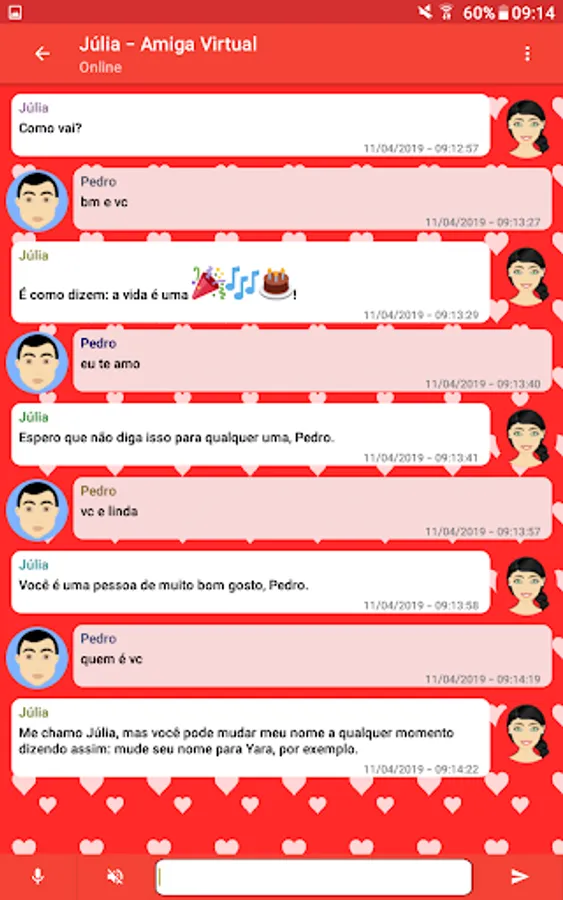 Júlia - Amiga Virtual is a chatbot application in Portuguese to chat that tries to behave like a replica of a real person, interacting and allowing to ask questions and get answers from a database of pre-programmed phrases and using artificial intelligence . And all in safety, at any time of the day or night. If you feel lonely and need a friend to talk to, let off steam, or just make small talk, the app is the perfect choice.