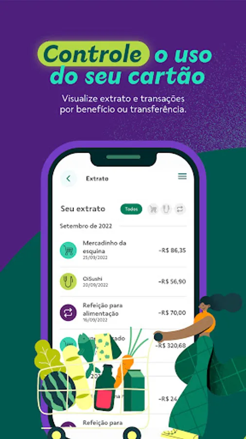 You can also access your virtual card for online purchases, even before receiving your physical card, and even transfer balance between Meal and Food benefits in the aid mode.