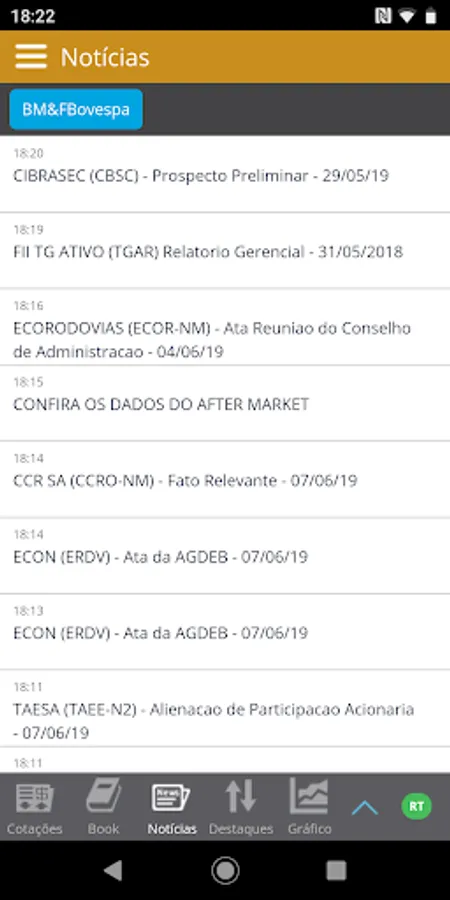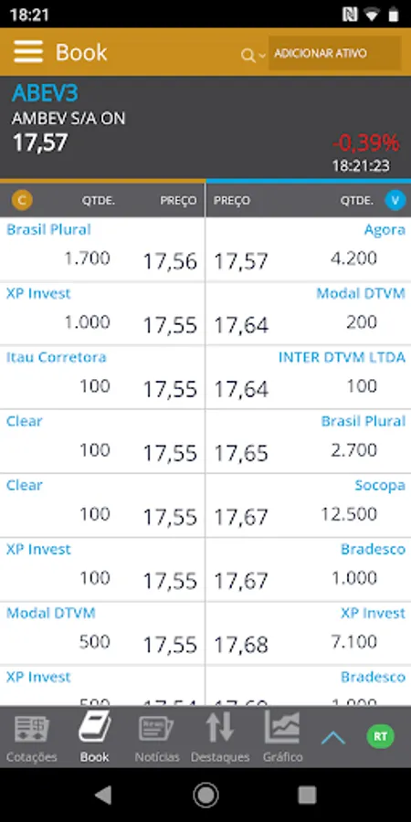 Operating with the Alfa Corretora application you can buy and sell Shares, Options, Real Estate Funds and ETFs. The available ballot options allow you to operate according to your strategy, with Stop Orders (Stop Loss, Stop Gain and Mobile Stop) and setting of active price notification alerts.