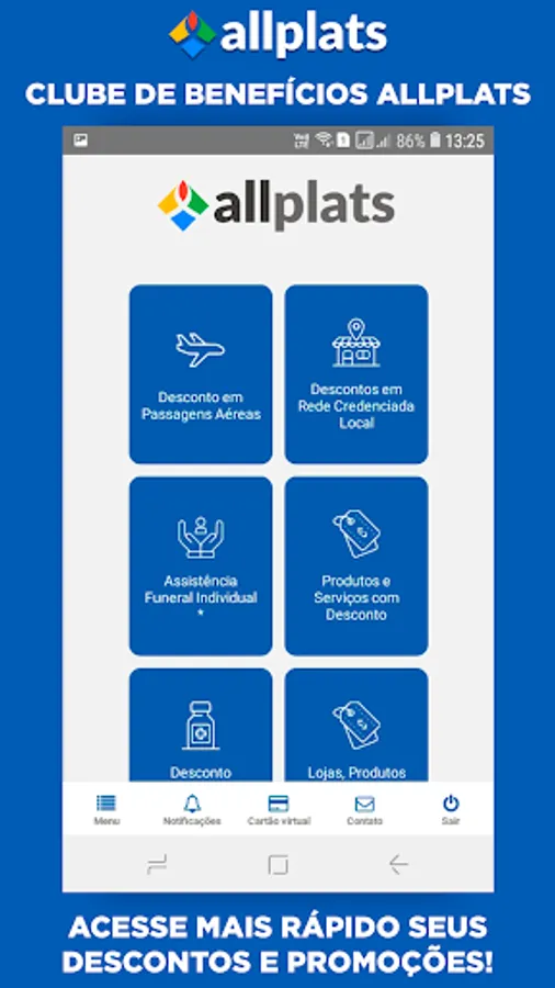 Download the new Allplats Benefit Club free app now, enjoy these benefits and make your purchases of products and services at special prices with more peace of mind and convenience!