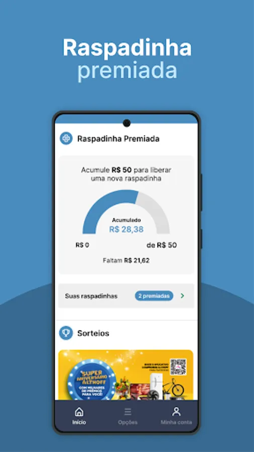 Suas compras identificadas no caixa podem gerar raspadinhas digitais e pelo aplicativo você pode tentar a sorte, raspando e concorrendo a diversos prêmios. "Raspou, achou, GANHOUU!"