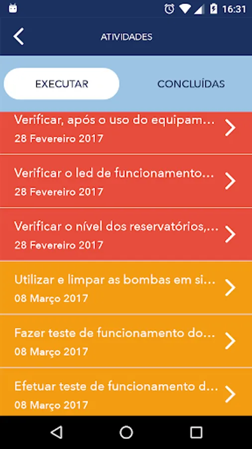 Whenever there is the need to perform some preventive maintenance, the application will alert warning and describing the activity to be performed.