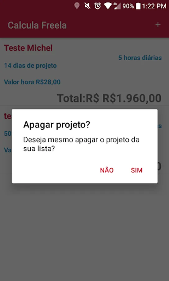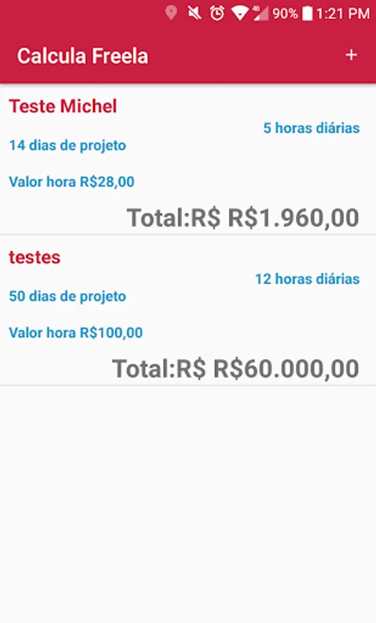Application that calculates the time value of a freelancer based on work time, it is also possible to calculate a project value based on the project time and time value.