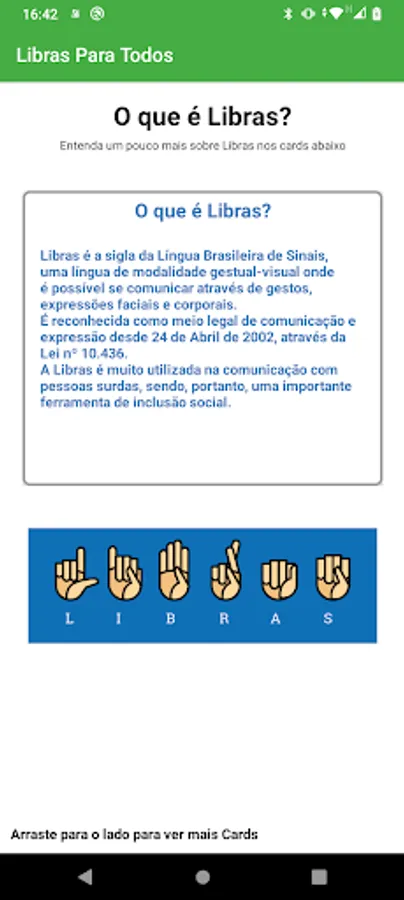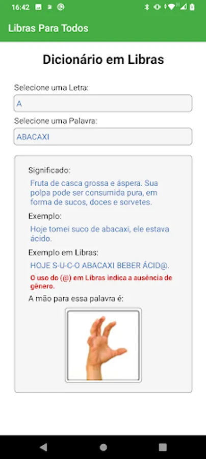 You will have access to more than 5700 words in Libras with the help of the dictionary inside the APP