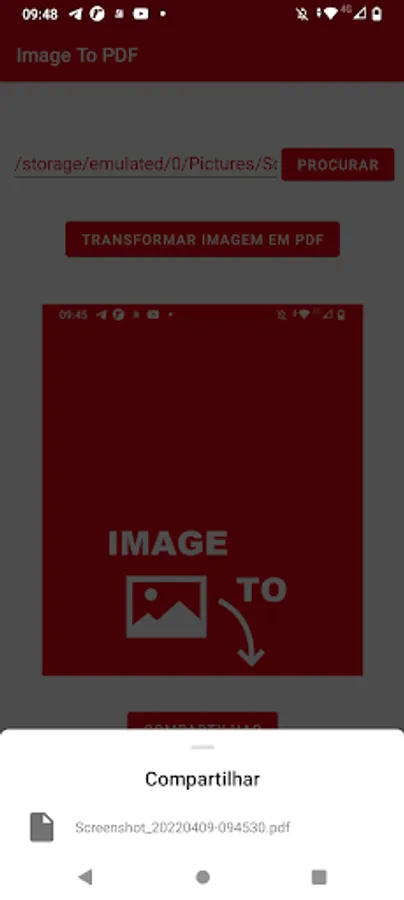 At the end of the transformation, the generated PDF will be saved in the "Downloads" folder on your phone and it will also be possible to immediately share the generated PDF.