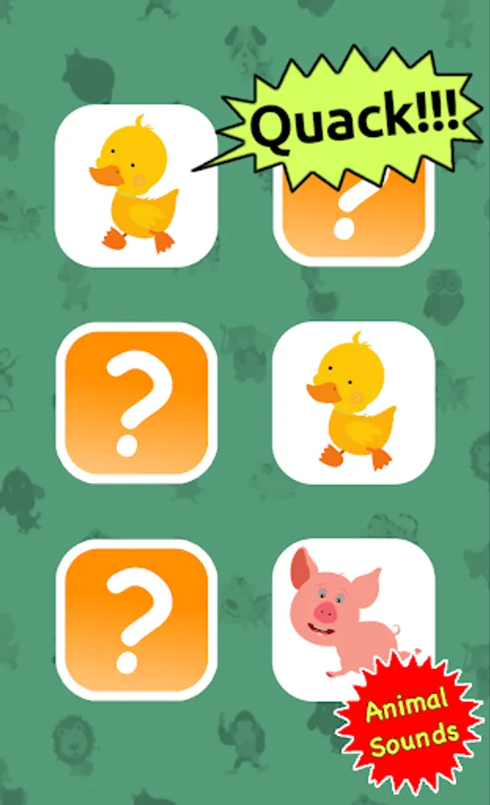 Match up animals! Animal Matching is a cute memory card game that will help your toddler to improve memory and logic reasoning and fine motor skill. Give it a try and let you children enjoy this funny and wonderful game plenty of cute pictures and motivating sounds of animals. This game is fun for kids but also for adults, since it has three difficult levels: easy, normal and hard. Parents can also play together with their toddlers.