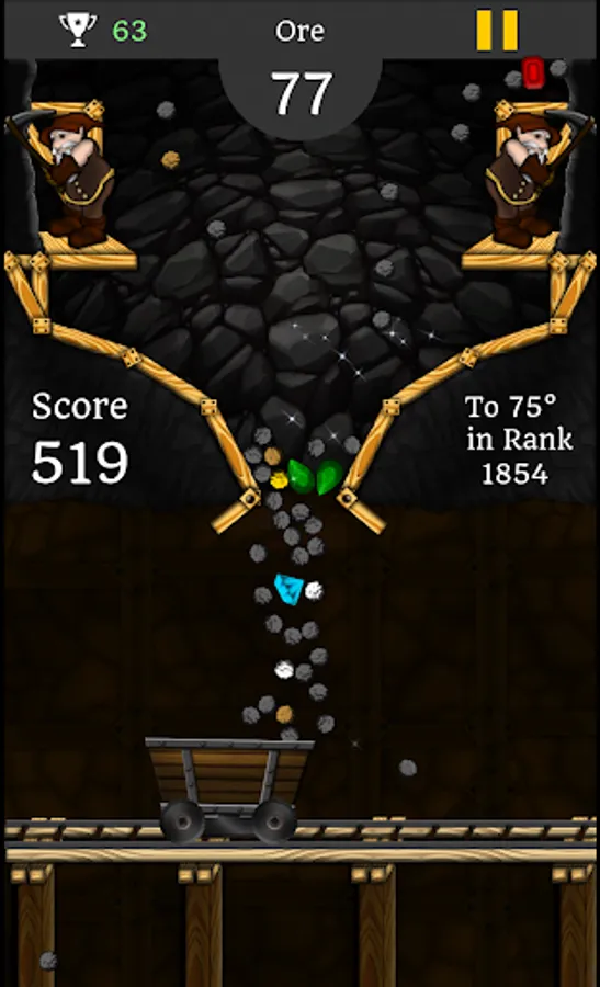 This is a super-simple casual game, just tap the screen at the right time to release the ore into the mine-cart. You can stop the game and resume it after anytime you want! Ideal for those looking for quick matches and also interacting with friends.
