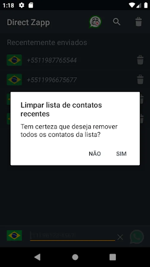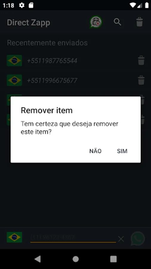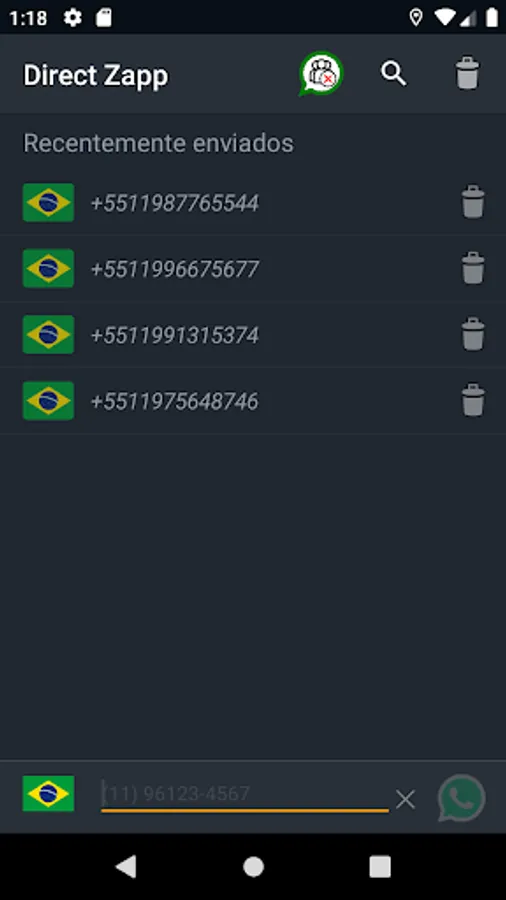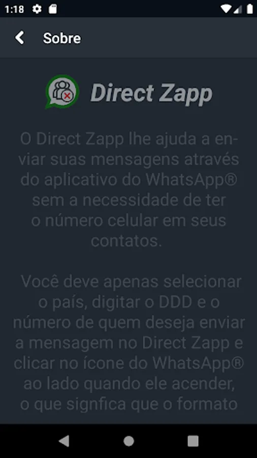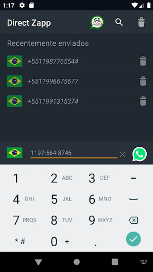 You just have to select the country, enter the DDD and number you want to send the message to in Direct Zapp and click the WhatsApp® icon next to it when it lights up, which means the number format you entered is correct and validated. WhatsaApp®.