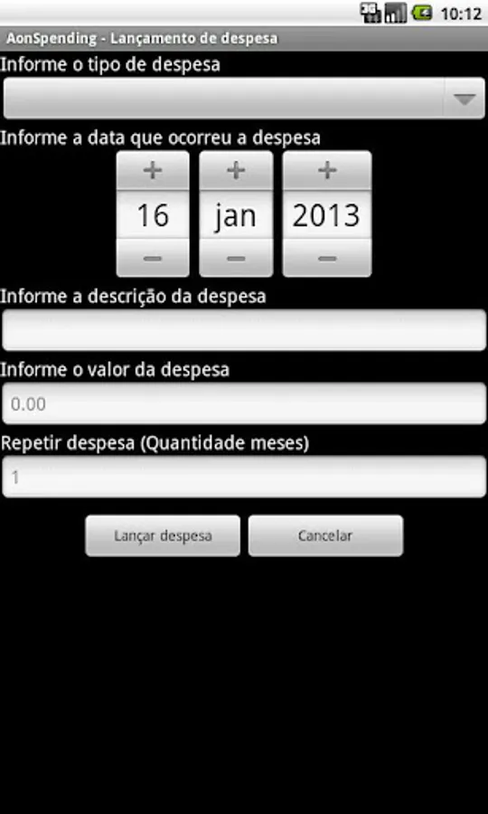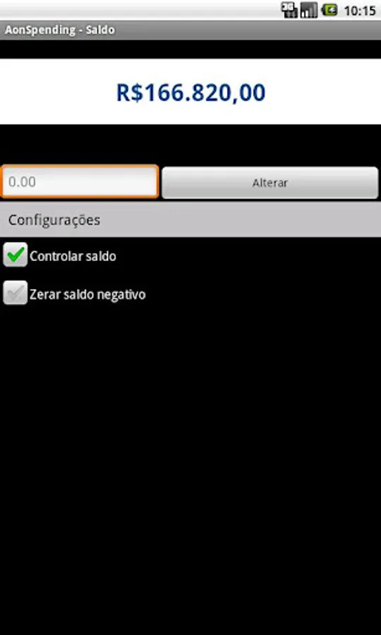 The Aon - Spending Control also allows the use of box where the user enters an initial value, and after the launches of expenditure, the box is automatically updated with the new value.