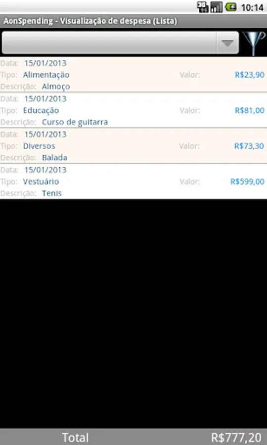 The Application Control allows you to control expenses in a practical way all expenses arising from the day, week, month or year.
